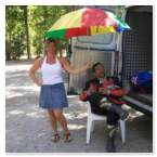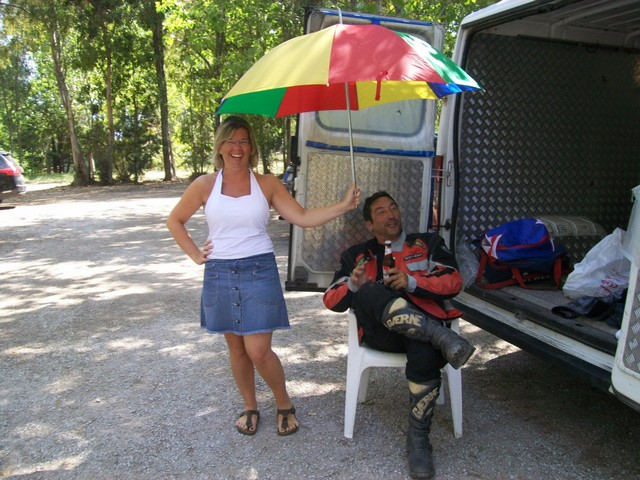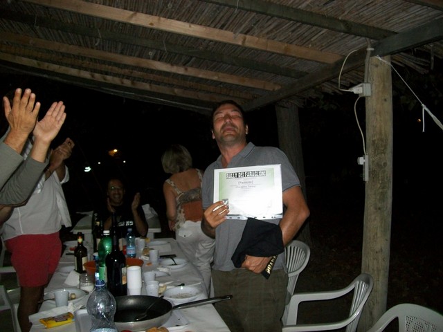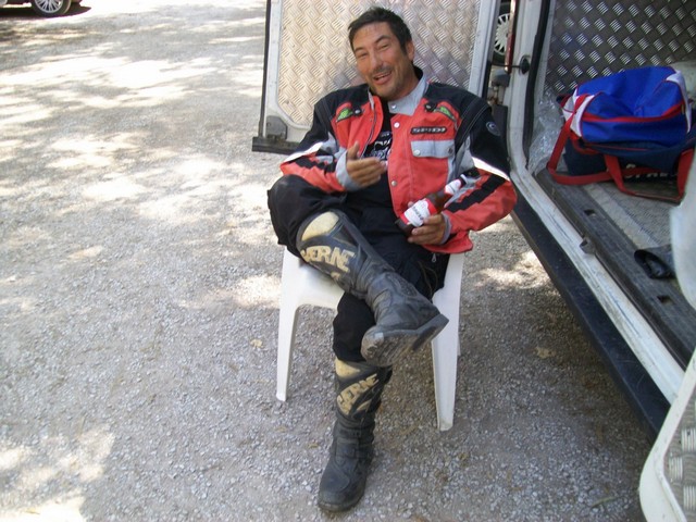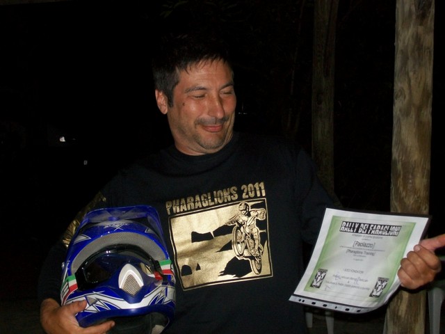 Artefice dell'operazione IL PARA che dopo un corso teorico - pratico ha portato PAOLAZZO sulle sterrate del Sulcis. Ormai il nostro fotografo è diventato un pilota accreditato ricevendo l'attestato ufficiale in una cena organizzata in suo onore. Abbiamo creato un MOSTRO e c'è la paura che il prossimo anno arrivi in campeggio col KATAMARANO con carrello al seguito su cui ci sarà caricata un'altra moto offroad. Pensate..... ha anche detto che ha già voglia di solcare le piste Africane.