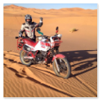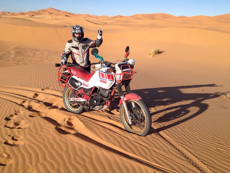 Sono appena tornati e naturalmente non poteva che tradursi in un altro grande successo!!!. Dalle montagne dell'Atlante alle dune di Merzouga. Anche se gommato stradale il nostro Sponsor in sella al suo grande amore non poteva altro che fare la sua porca figura sulle sabbie del sud del Marocco passando da una duna all'altra pensando di essere sulla sua motina. Ci sembra che ci sia un detto che narra: "La classe non è acqua".